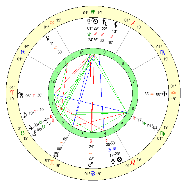 | Neptune | 1 Virgo 18 | 29 Pisces 24 | 29 Leo 3 |