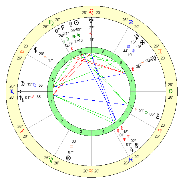 | Venus | 21 Virgo 37 | 9 Leo 36 | 0 Scorpio 55 |