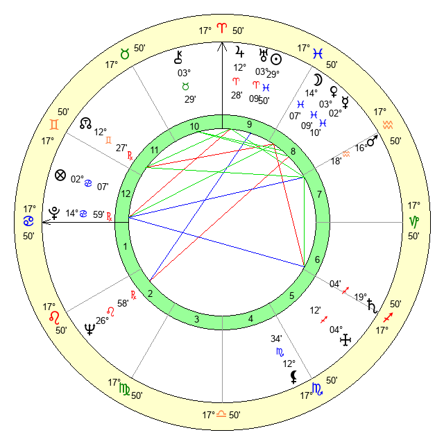 | Moon | 14 Pisces 6 | 10 Sagittarius 10 | 12 Libra 33 |