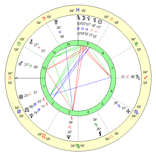 | Jupiter | 3 Pisces 39 | 11 Gemini 16 | 25 Pisces 56 |