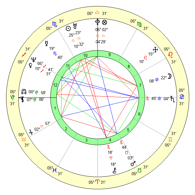 | Moon | 21 Cancer 58 | 24 Virgo 15 | 12 Gemini 22 |