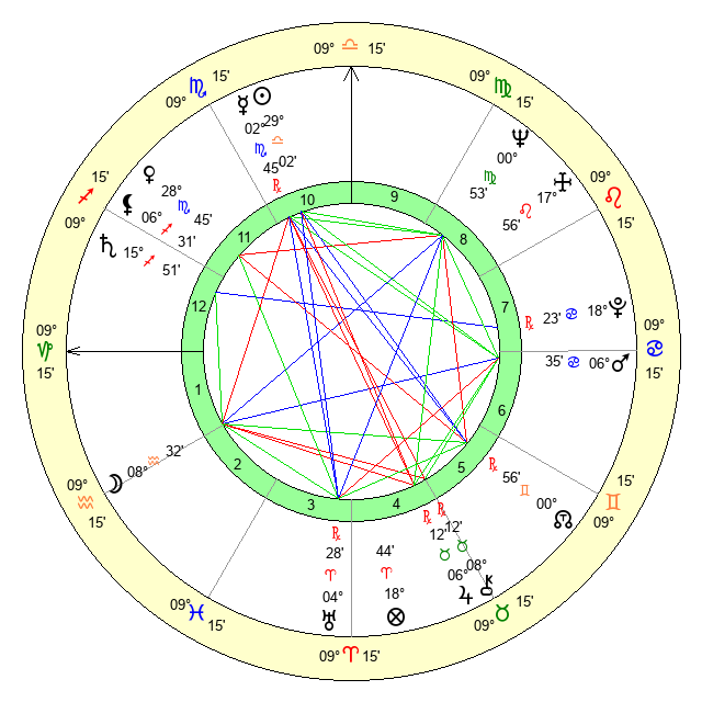 | Neptune | 0 Virgo 54 | 29 Pisces 59 | 0 Virgo 37 |