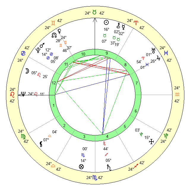 | Sun | 16 Taurus 8 | 17 Taurus 23 | 19 Leo 56 |