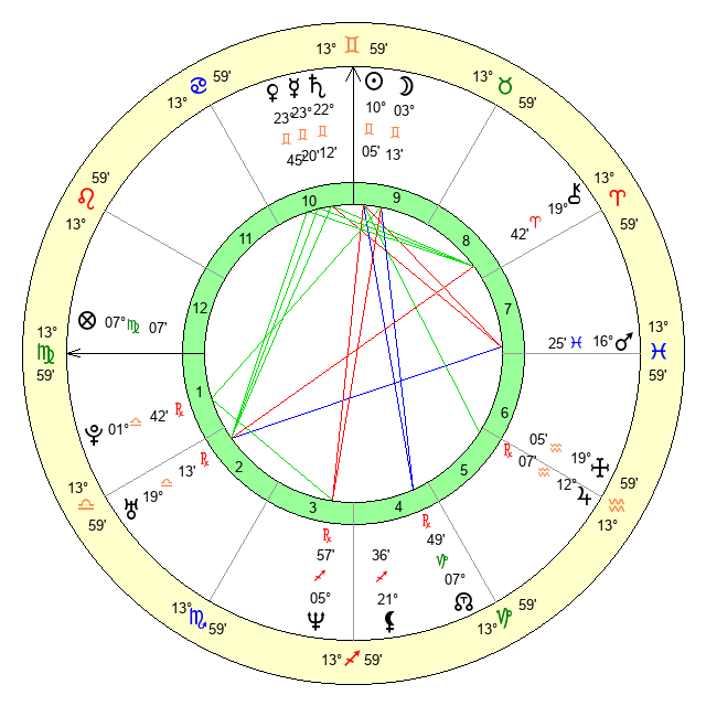 | Mercury | 23 Gemini 20 | 12 Gemini 24 | 25 Cancer 46 |