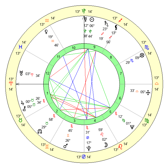 | Neptune | 1 Virgo 13 | 29 Pisces 27 | 28 Leo 55 |