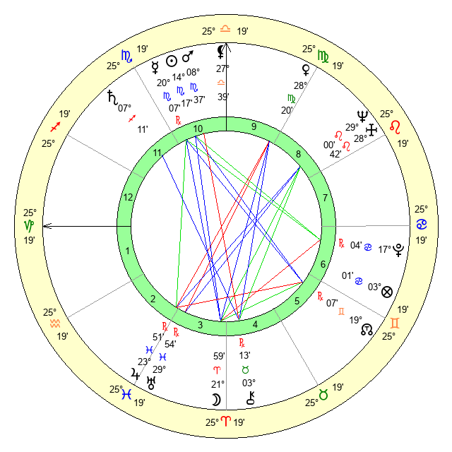| Venus | 28 Virgo 21 | 0 Scorpio 57 | 19 Capricorn 3 |