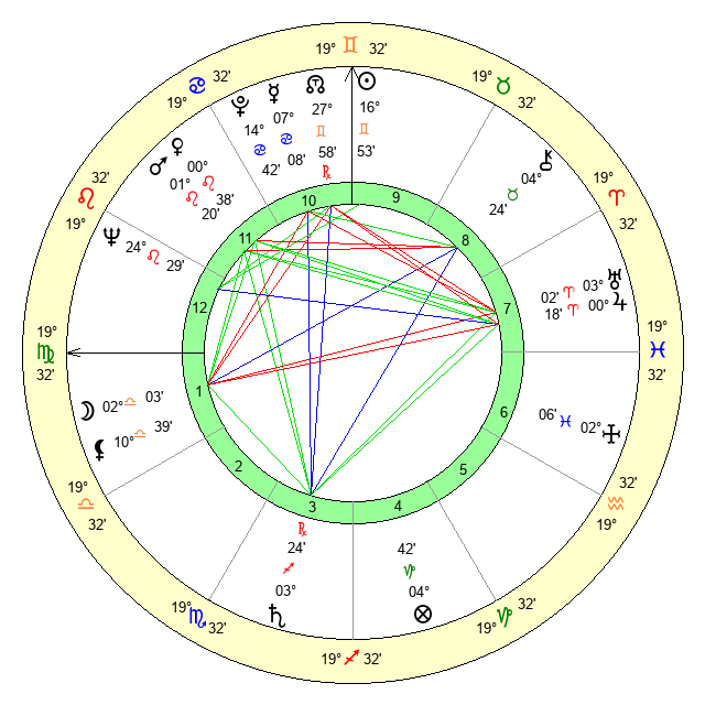 | Sun | 16 Gemini 54 | 18 Gemini 9 | 20 Virgo 52 |