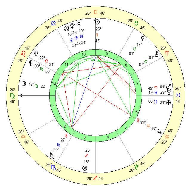 | Moon | 17 Virgo 17 | 12 Pisces 43 | 10 Taurus 43 |