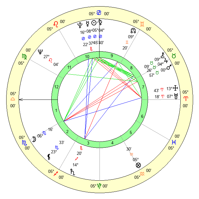 | Moon | 6 Scorpio 22 | 6 Leo 16 | 22 Taurus 22 |