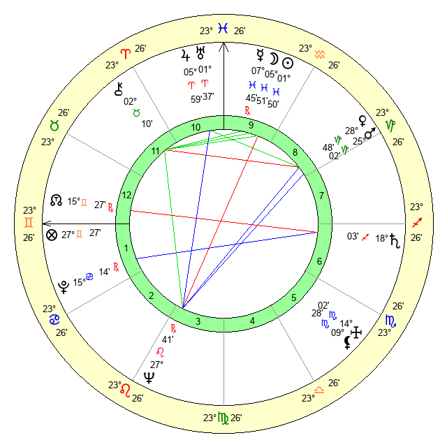 | Moon | 5 Pisces 49 | 14 Sagittarius 3 | 3 Libra 49 |