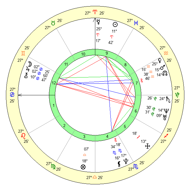 | Moon | 2 Cancer 27 | 27 Taurus 52 | 11 Libra 45 |