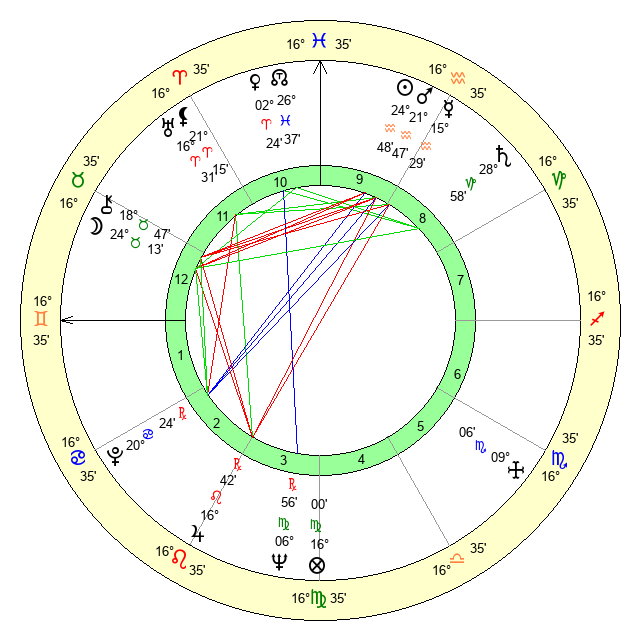 | Mars | 21 Aquarius 47 | 17 Cancer 34 | 3 Taurus 56 |