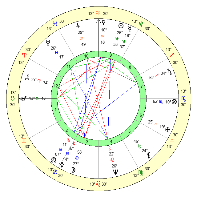 | Moon | 23 Cancer 53 | 12 Virgo 30 | 14 Aquarius 21 |