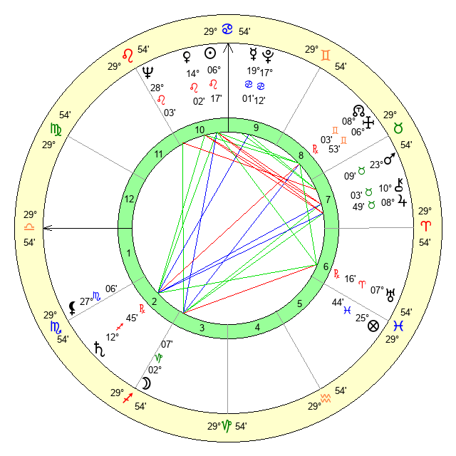 | Moon | 2 Capricorn 12 | 5 Libra 49 | 29 Cancer 43 |