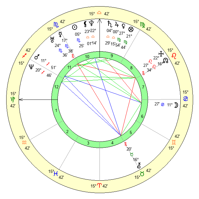 | Venus | 27 Virgo 55 | 18 Libra 27 | 23 Scorpio 5 |