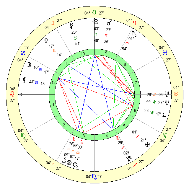 Mars | 23 Aries 9 | 2 Leo 20 | 14 Taurus 50 |