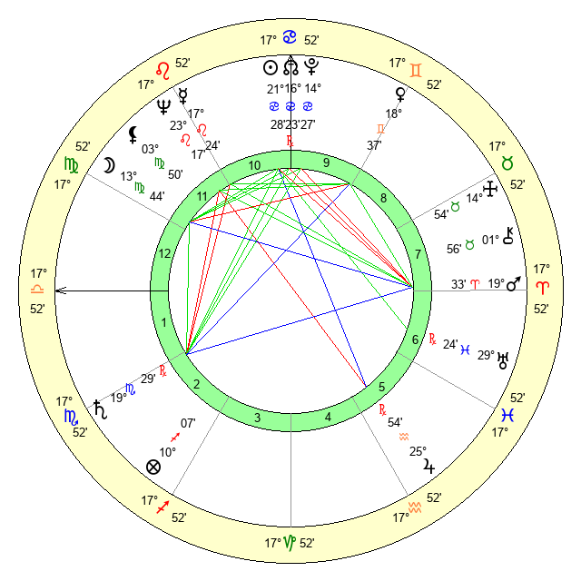 | Sun | 21 Cancer 28 | 22 Cancer 30 | 27 Libra 32 |