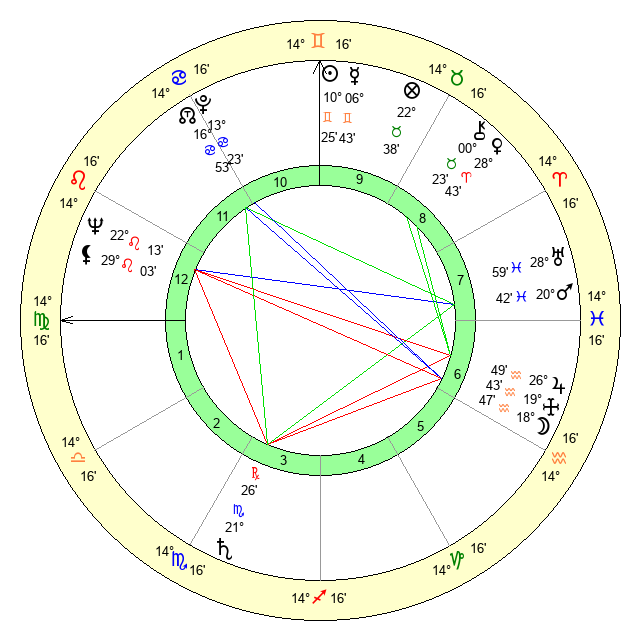 | Sun | 10 Gemini 25 | 11 Gemini 27 | 15 Virgo 16 |
