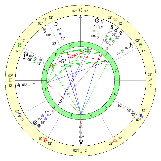 | Sun | 13 Aquarius 9 | 14 Aquarius 6 | 17 Taurus 22 |