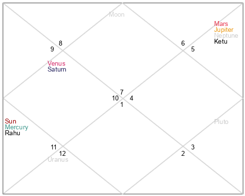 | Ketu | 8 Virgo 25 | 29 Virgo 1 | 3 Virgo 33 |