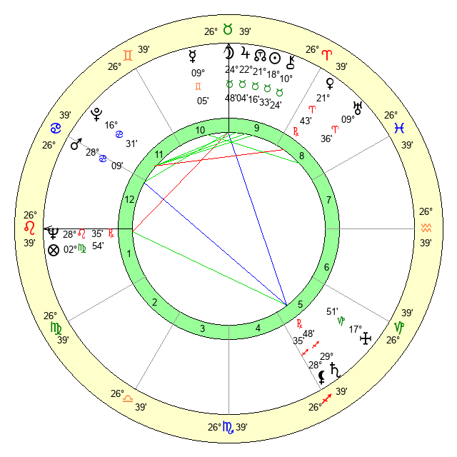 | Neptune | 28 Leo 36 | 1 Aries 21 | 0 Virgo 43 |