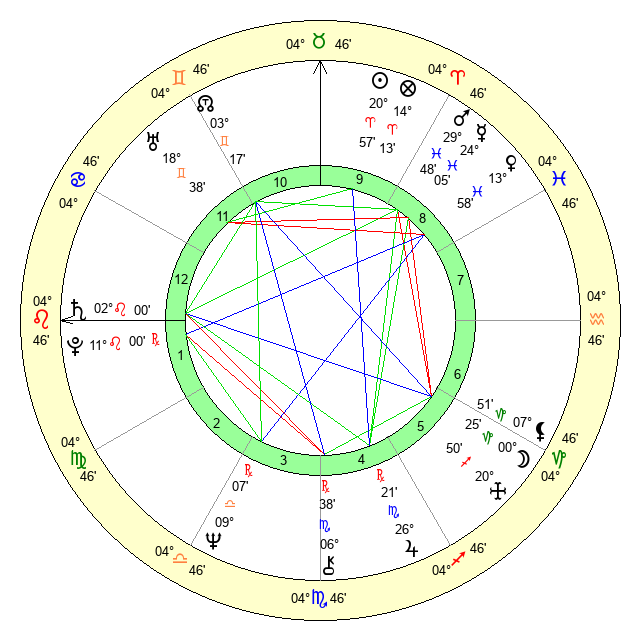 | Saturn | 2 Leo 28 | 25 Pisces 40 | 8 Leo 7 |
