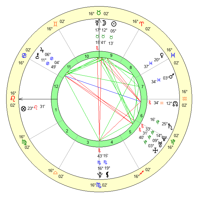 | Mars | 3 Pisces 34 | 3 Leo 13 | 29 Pisces 33 |