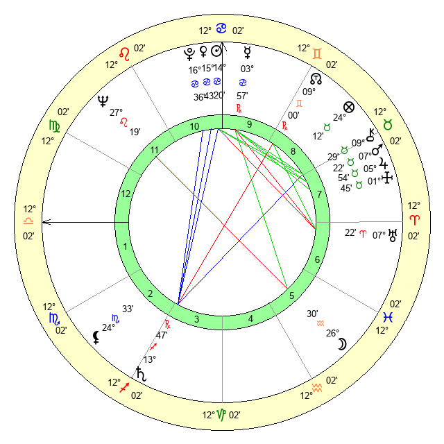 | Venus | 15 Cancer 44 | 2 Gemini 17 | 15 Scorpio 16 |