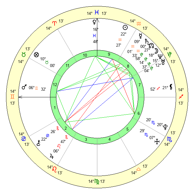 | Mars | 6 Gemini 32 | 18 Cancer 0 | 21 Gemini 36 |
