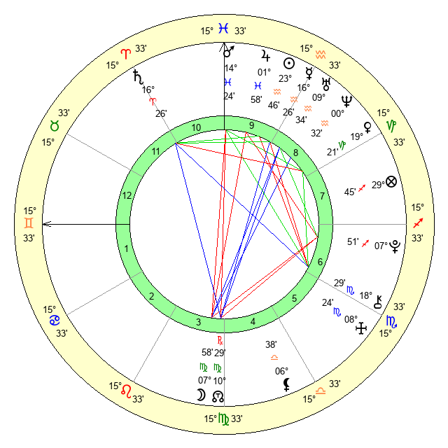| Jupiter | 2 Pisces 1 | 11 Gemini 23 | 8 Pisces 31 |