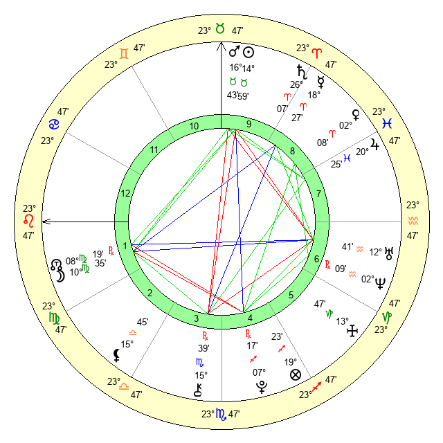 | Moon | 10 Virgo 37 | 28 Leo 42 | 7 Virgo 1 |