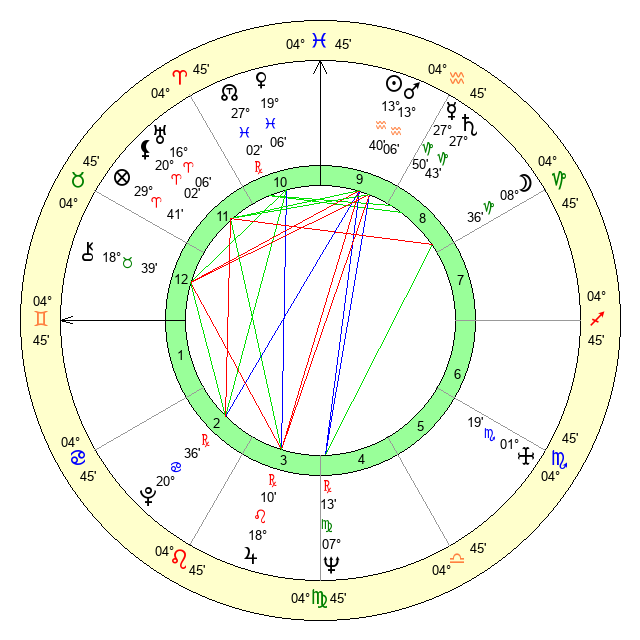 | Saturn | 27 Capricorn 56 | 17 Pisces 39 | 4 Aquarius 54 |