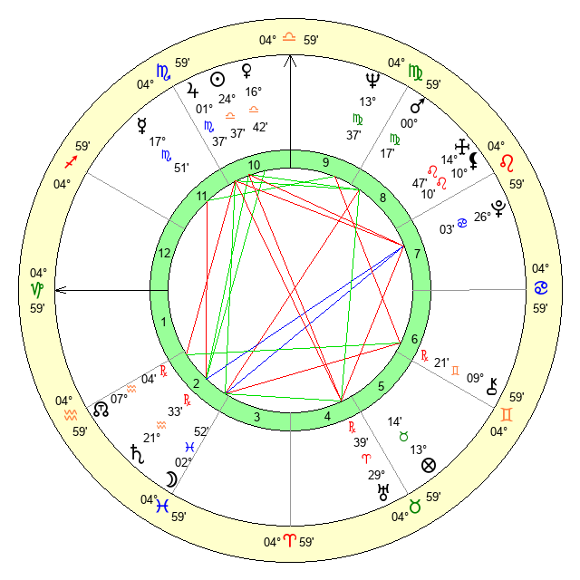 | Venus | 16 Libra 43 | 5 Libra 59 | 10 Aquarius 59 |