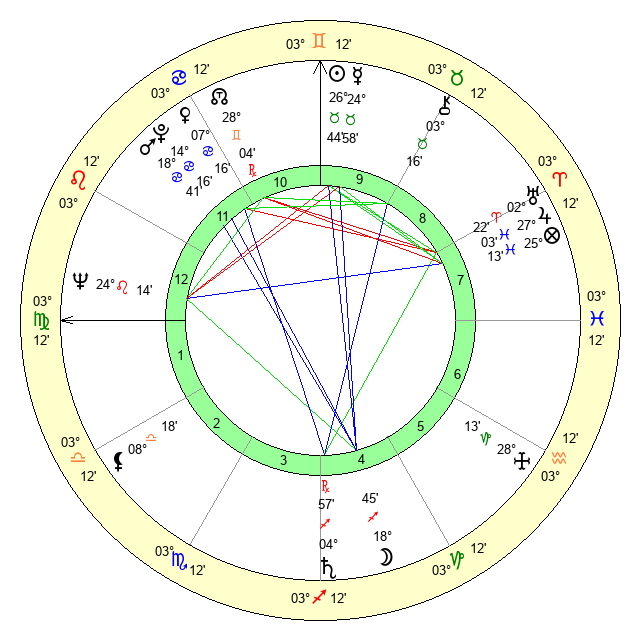 | Sun | 26 Taurus 45 | 28 Taurus 0 | 0 Virgo 31 |
