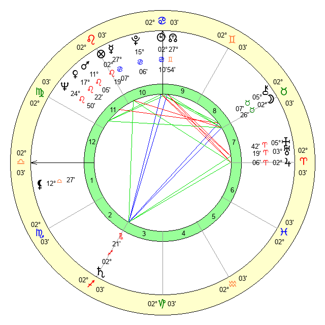 | Sun | 2 Cancer 10 | 3 Cancer 26 | 6 Libra 32 |