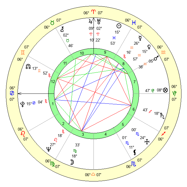 | Moon | 18 Virgo 28 | 16 Gemini 40 | 26 Pisces 17 |