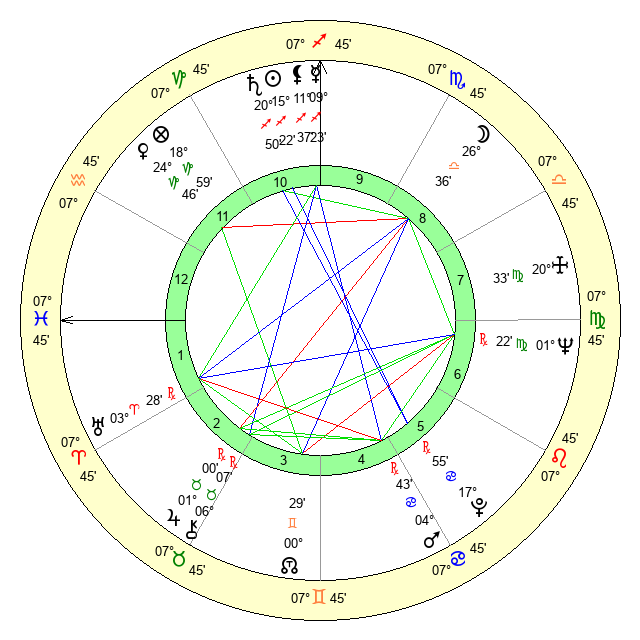 | Neptune | 1 Virgo 23 | 29 Pisces 22 | 29 Leo 22 |