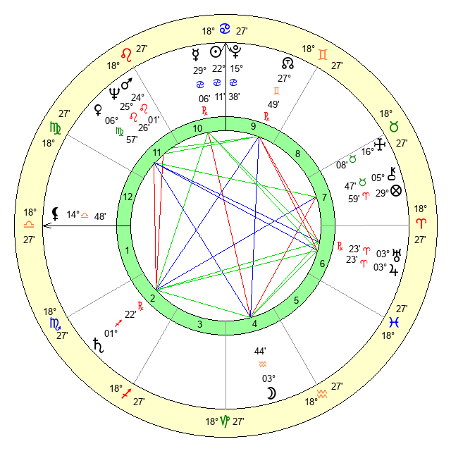| Sun | 22 Cancer 12 | 23 Cancer 27 | 27 Libra 18 |