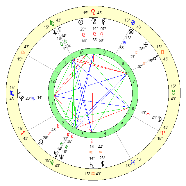 | Venus | 14 Virgo 4 | 21 Cancer 42 | 24 Libra 34 |