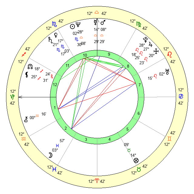 | Saturn | 21 Scorpio 44 | 25 Pisces 57 | 29 Scorpio 41 |