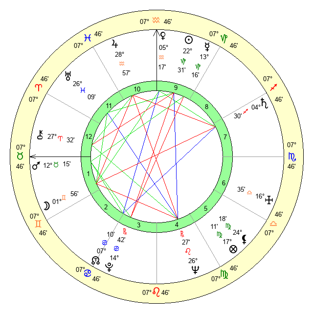| Moon | 1 Gemini 59 | 26 Scorpio 40 | 4 Capricorn 26 |