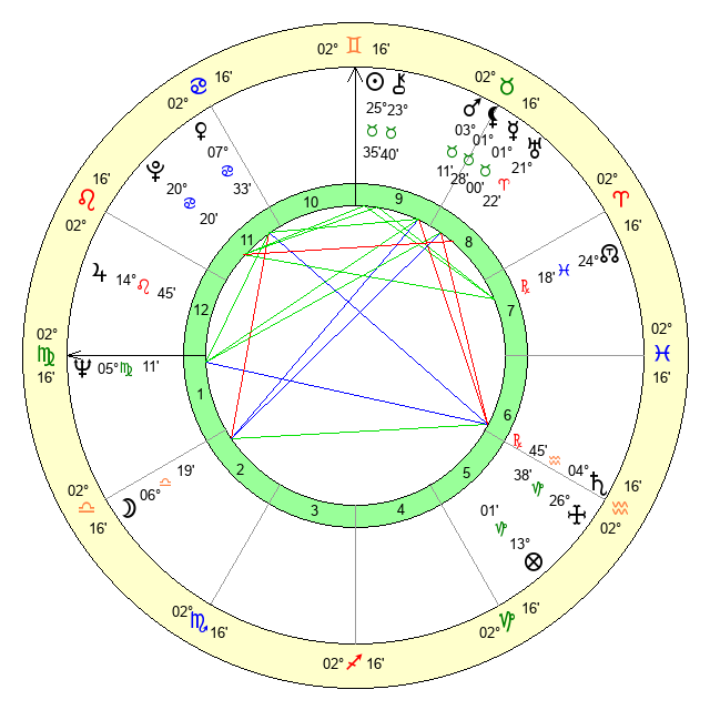 | Moon | 6 Libra 27 | 10 Capricorn 50 | 10 Pisces 59 |
