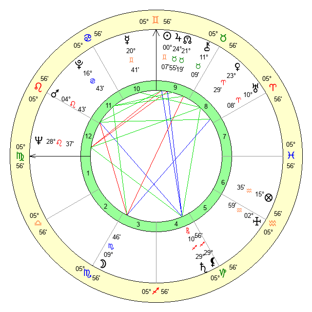 | Sun | 0 Gemini 8 | 0 Gemini 53 | 1 Virgo 59 |