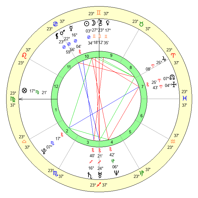 | Moon | 27 Gemini 12 | 7 Cancer 25 | 8 Scorpio 0 |