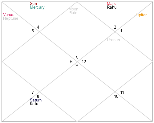 | Rahu | 5 Gemini 44 | 19 Pisces 38 | 0 Gemini 36 |