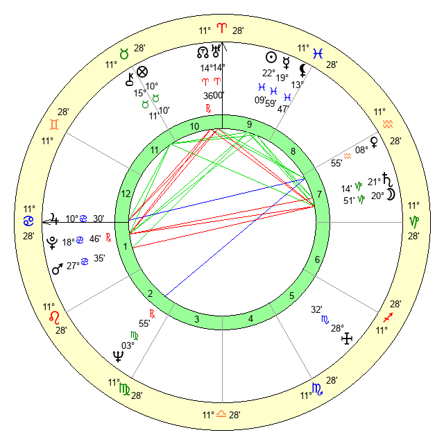| Neptune | 3 Virgo 55 | 29 Pisces 22 | 3 Virgo 16 |