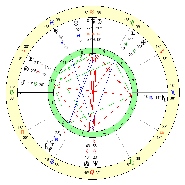 | Sun | 2 Pisces 32 | 3 Pisces 16 | 10 Gemini 37 |