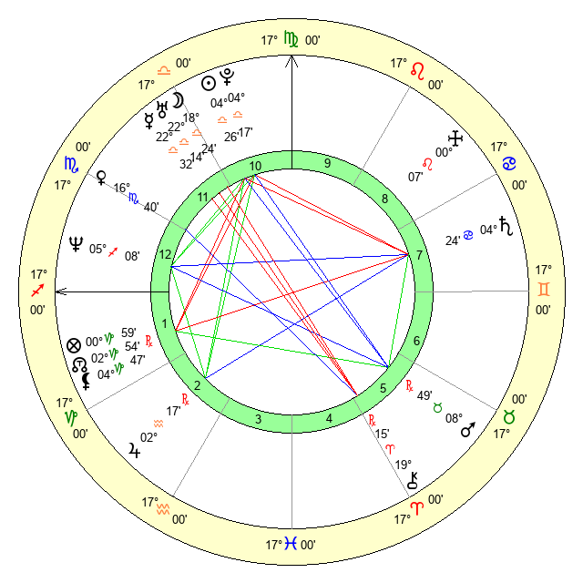 | Moon | 18 Libra 23 | 9 Sagittarius 37 | 14 Virgo 14 |