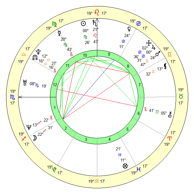 | Moon | 22 Sagittarius 30 | 6 Virgo 7 | 19 Virgo 24 |