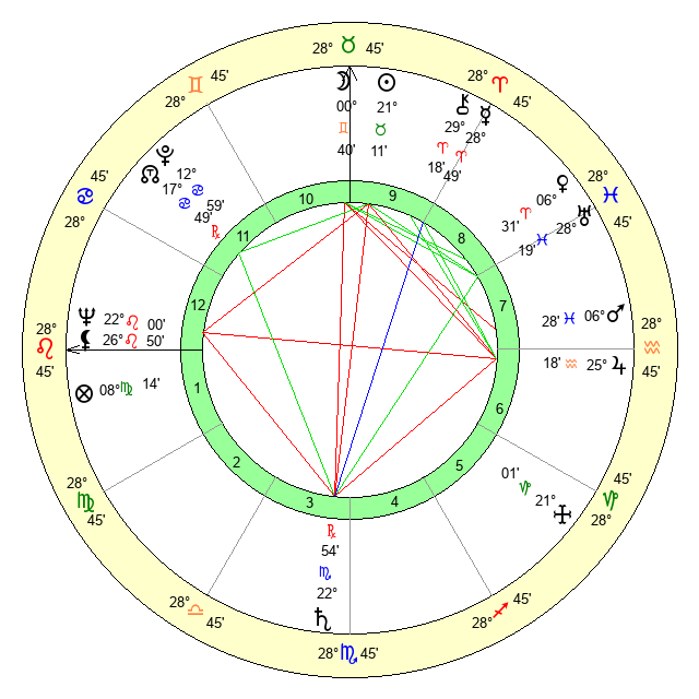 | Neptune | 22 Leo 1 | 1 Aries 26 | 24 Leo 34 |